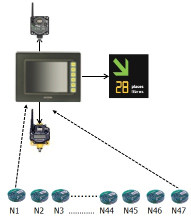 由于單個停車場的車位有時可以達到幾百,甚至上千個。所以為了能夠讓無線網(wǎng)絡(luò)覆蓋整個停車場,需要對停車場進行區(qū)域劃分,形成若干個獨立的子網(wǎng)絡(luò)。每個子網(wǎng)絡(luò)由一個邦納SHP控制器進行數(shù)據(jù)預(yù)收集。同時將本區(qū)域空車位數(shù)量傳送給LED引導(dǎo)屏,方便車主選擇停車位。