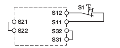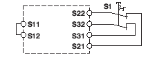 如果是雙通道不檢測(cè)觸點(diǎn)間短路故障工作方式的話則是短接S21S22,兩個(gè)常閉觸點(diǎn)分別置于S11S12,S11S32之間。